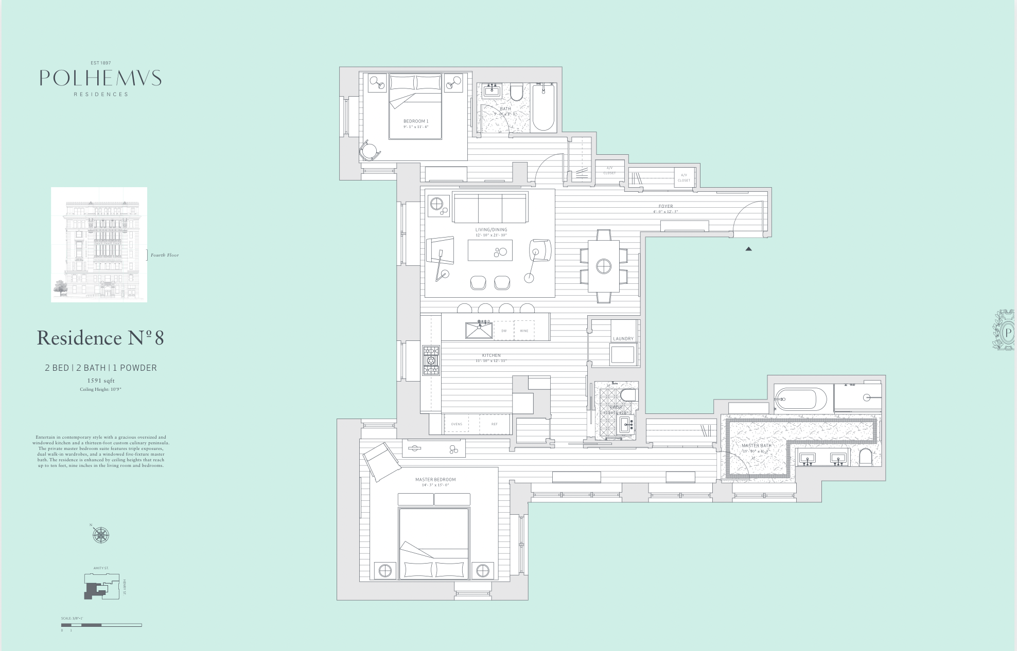Designed to show a space's design potential, our floorplans are custom-designed with accurate scale and feature designer décor silhouettes, art placement, and accessories.
